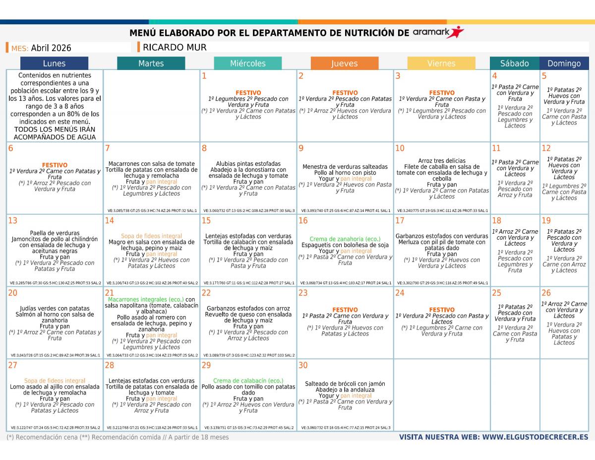 MENÚ ABRIL