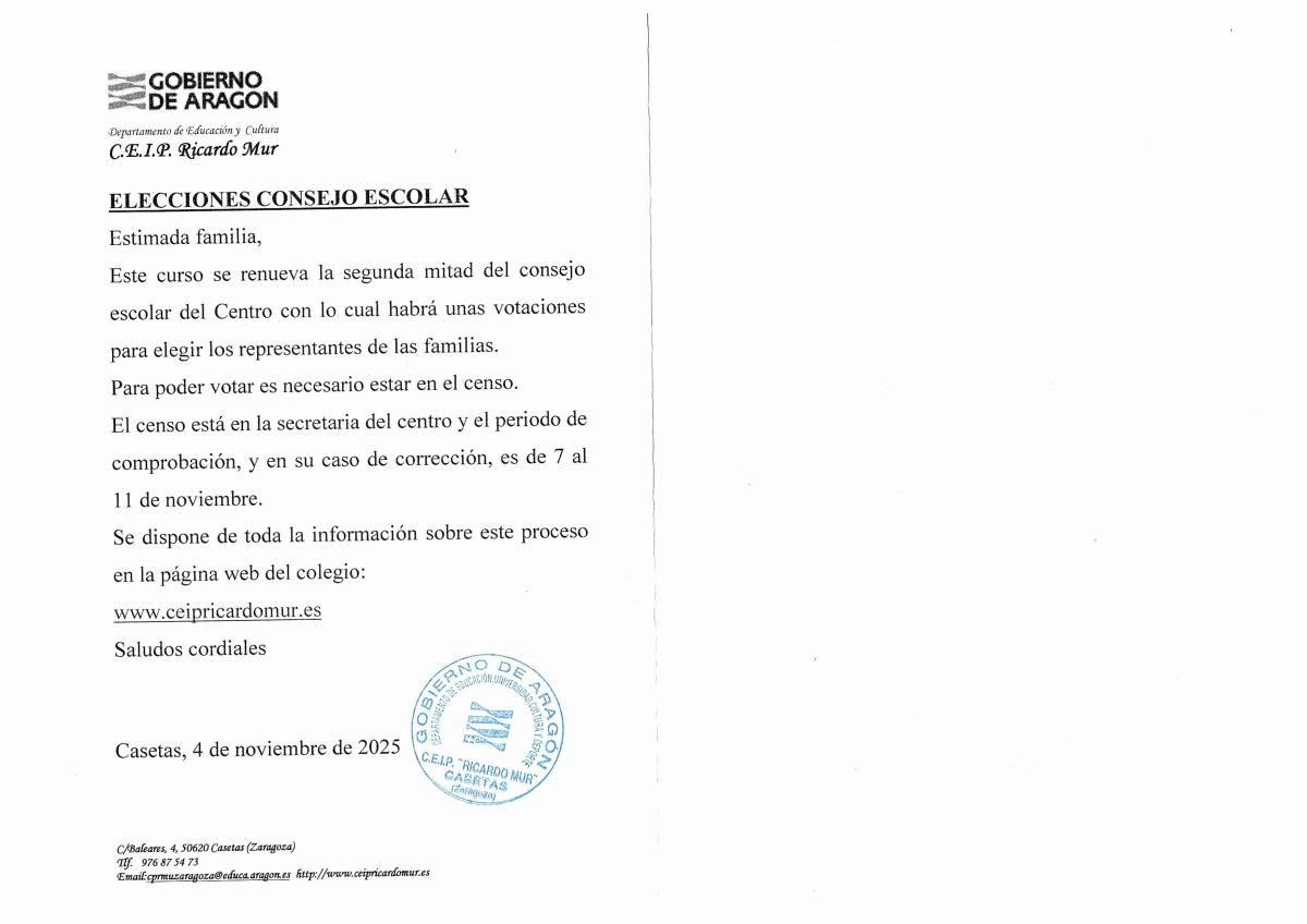 Los Consejos Escolares se renuevan cada dos años. En este curso se celebran, de nuevo, las elecciones al Consejo Escolar del Colegio.